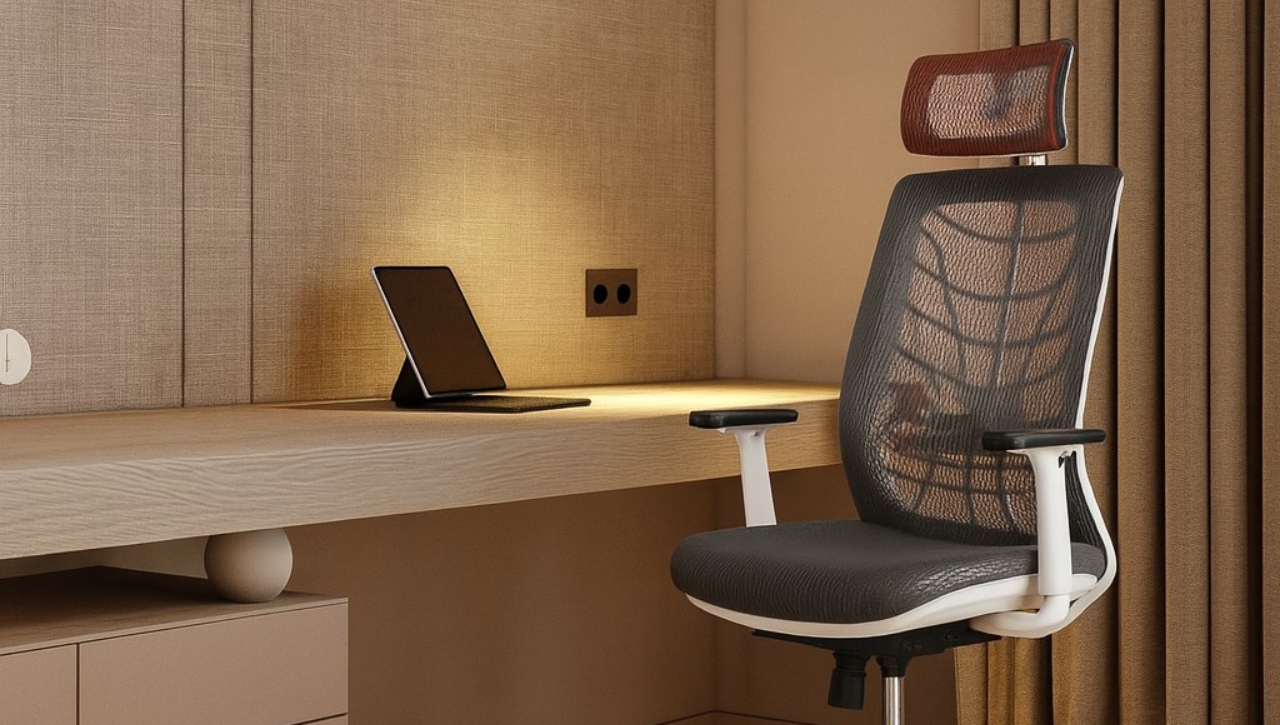 🔹 Respaldo de red con fibra de vidrio: ventilación constante y soporte adaptable para una postura saludable.