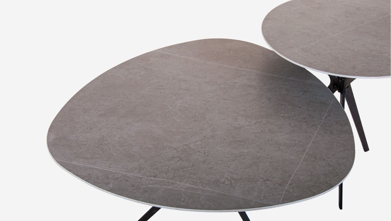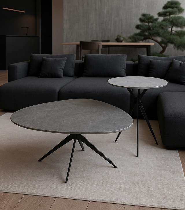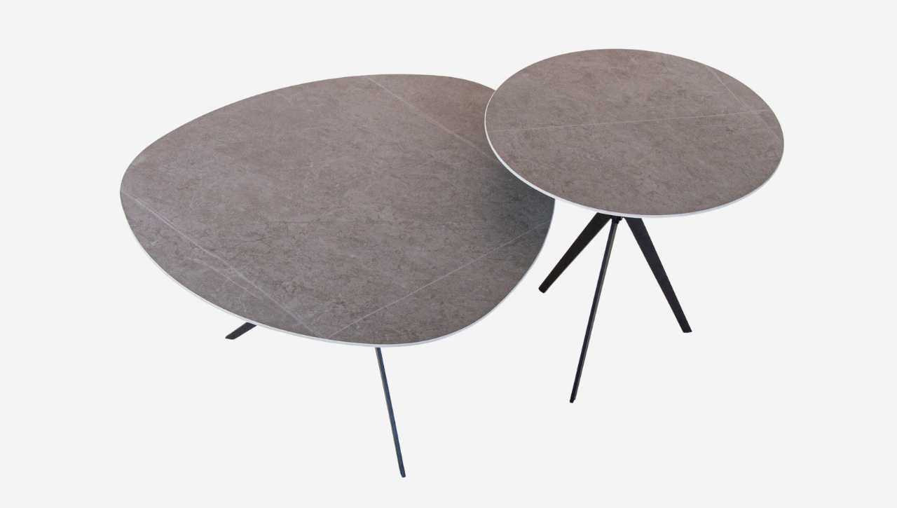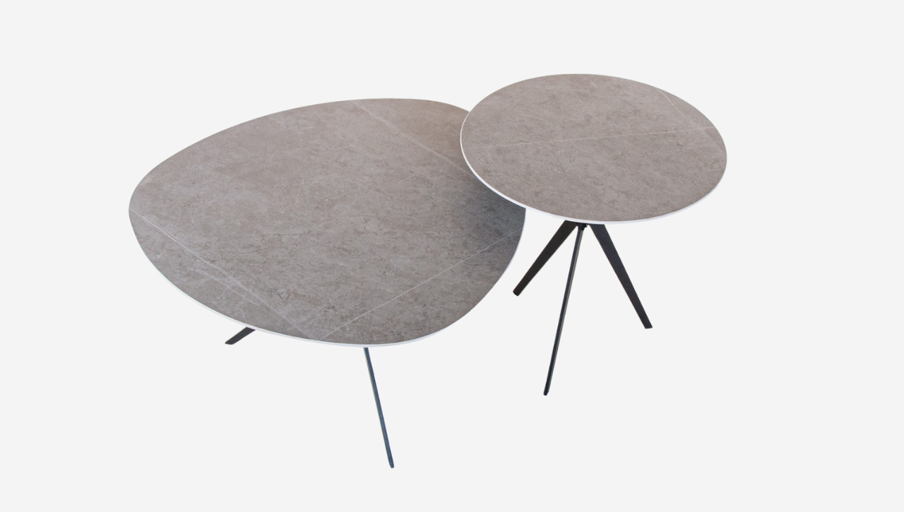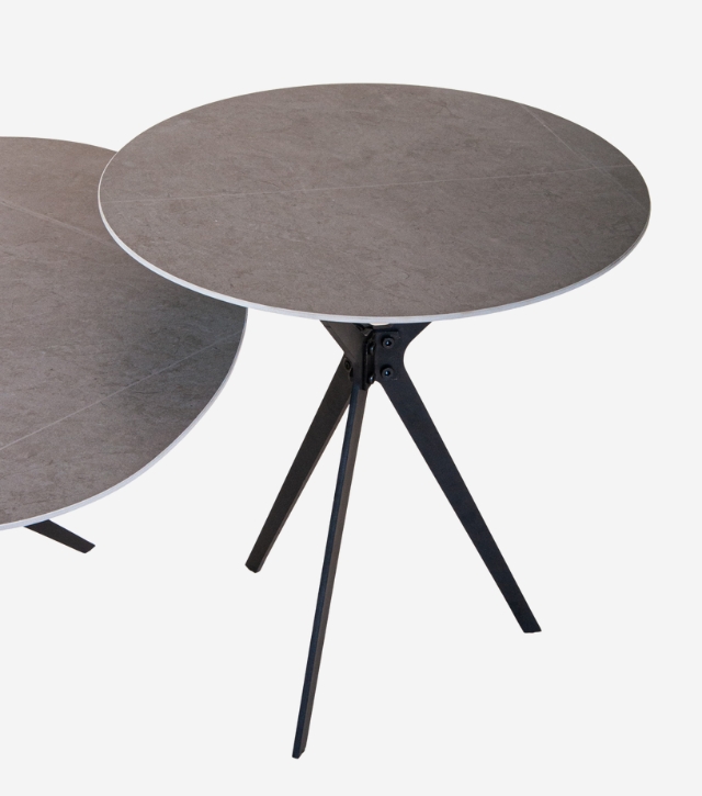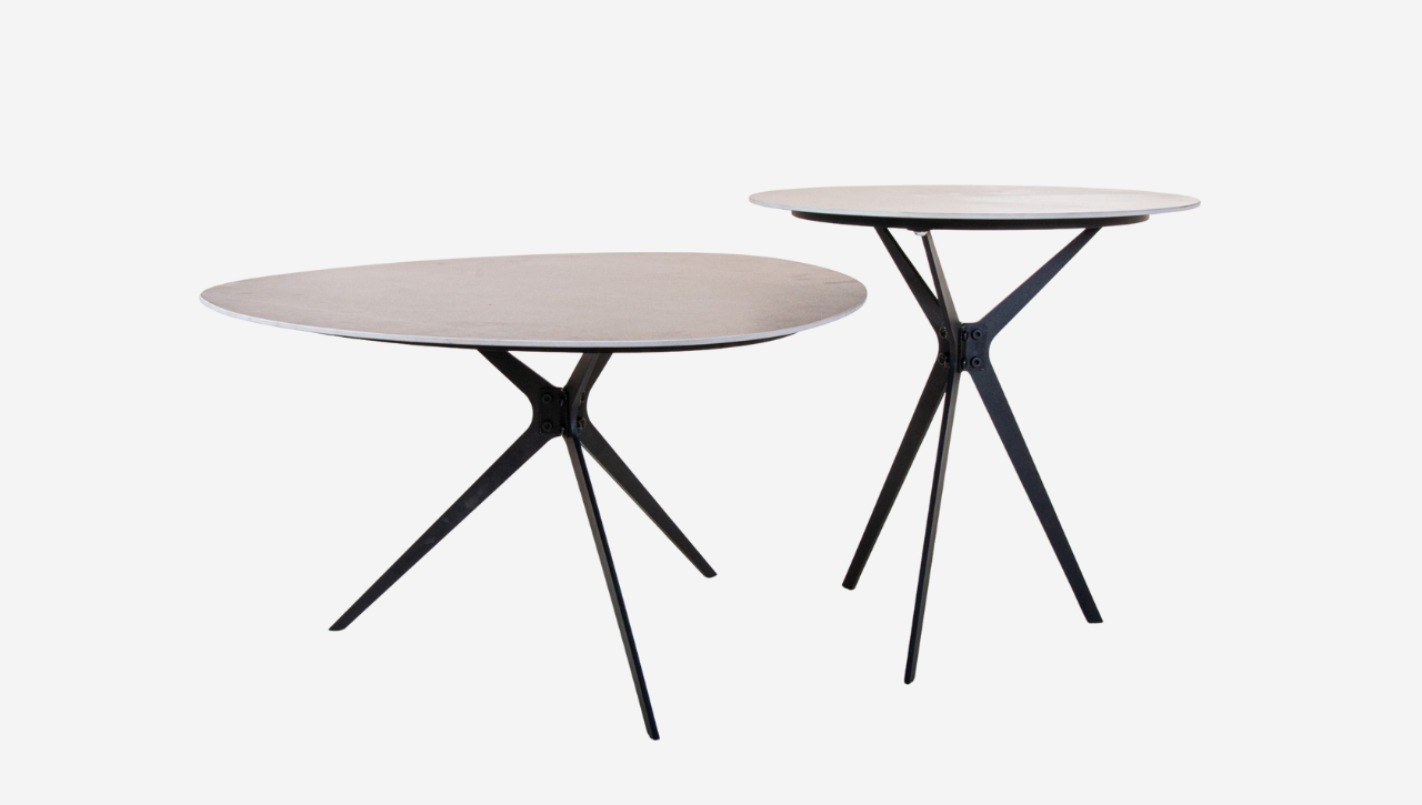 Mura toma su nombre de las “mura” italianas: murallas que combinan fortaleza y ligereza en el paisaje urbano. Su tapa delgada de lectura continua y la base metálica triangulada crean una pieza estable, esbelta y muy contemporánea. El nodo central remachado ordena las patas y distribuye las cargas con precisión, mientras el acabado tipo piedra aporta textura y sobriedad. Disponible en dos alturas para usar sola o en dúo, Mura organiza el espacio sin recargarlo: diseño limpio, materiales nobles y una presencia arquitectónica que se siente.