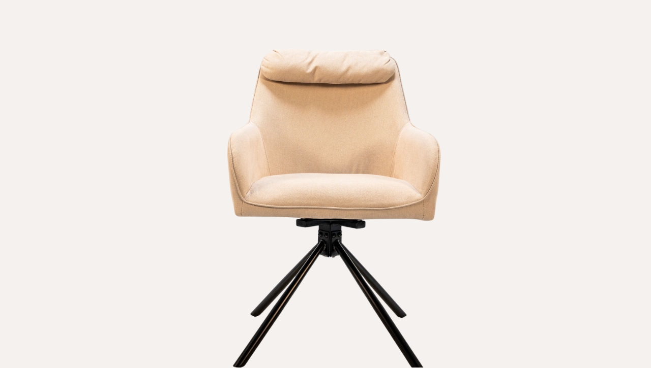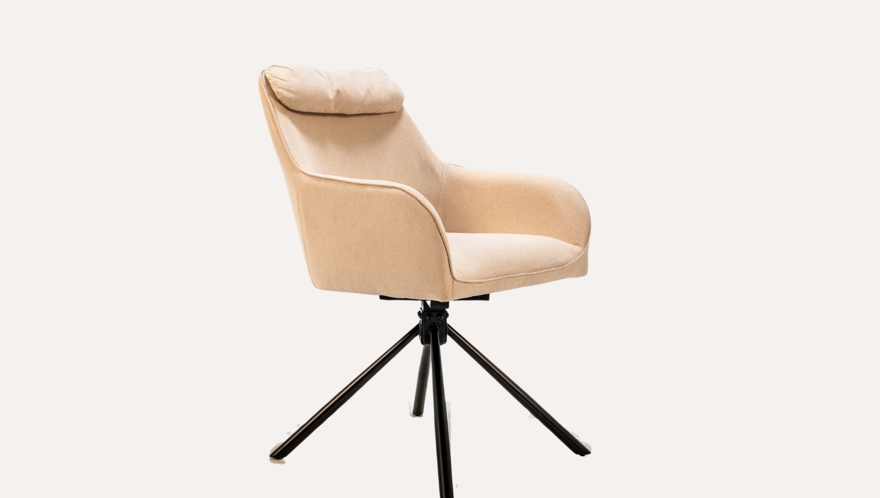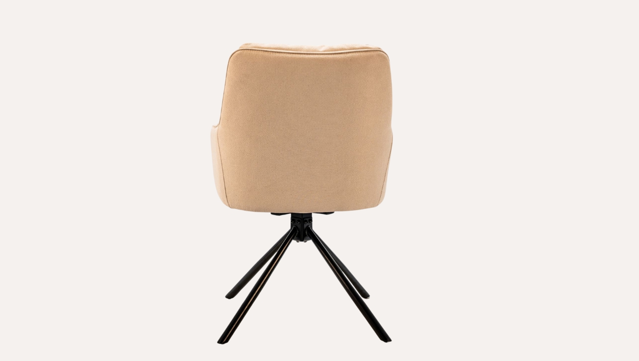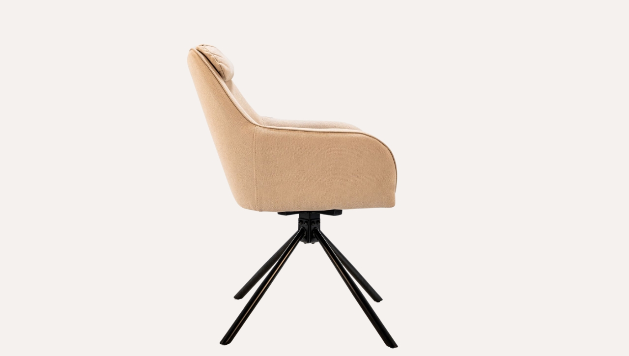 Asiento y respaldo: estructura interna resistente recubierta con espuma de alta densidad que asegura comodidad prolongada. Tapizado en tela tipo bouclé de tono beige, suave al tacto y de gran resistencia, aportando textura y calidez al ambiente.