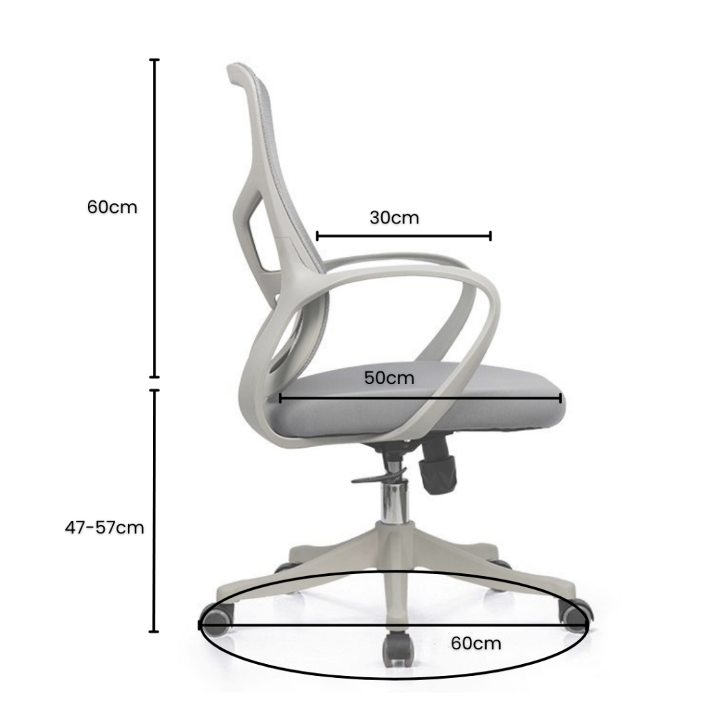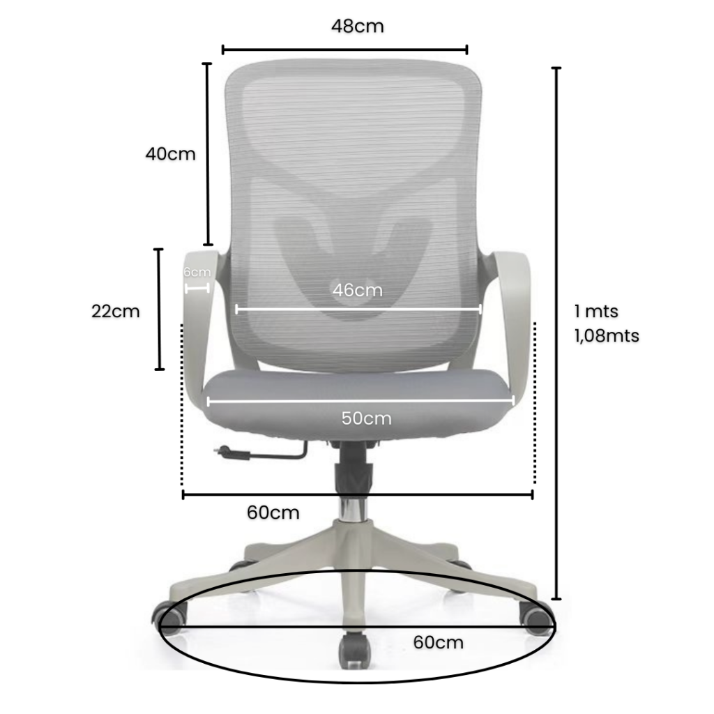 Este sillón ofrece un asiento de tela microperforada con espuma, diseñado para brindar comodidad y soporte durante largas jornadas. Su respaldo de malla Mesh mantiene la espalda ventilada, acompañado de un soporte lumbar predefinido que mejora la postura.