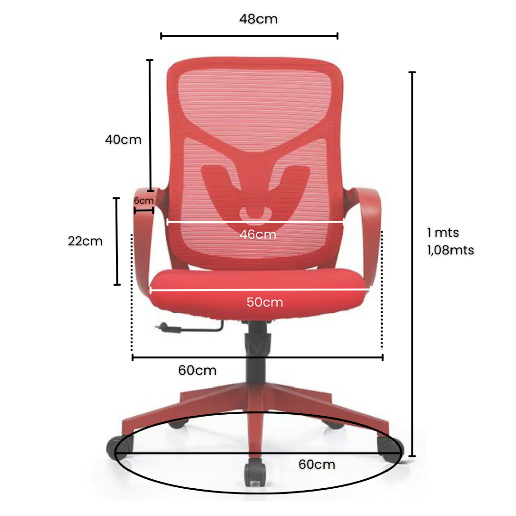 Este sillón ofrece un asiento de tela microperforada con espuma, diseñado para brindar comodidad y soporte durante largas jornadas. Su respaldo de malla Mesh mantiene la espalda ventilada, acompañado de un soporte lumbar predefinido que mejora la postura.