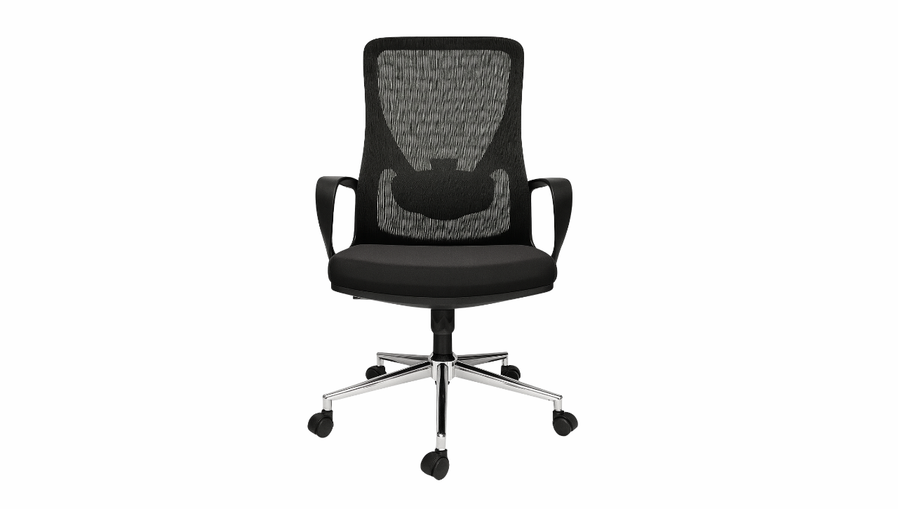 Este sillón ofrece un asiento de tela microperforada con espuma, diseñado para brindar comodidad y soporte durante largas jornadas. Su respaldo de malla Mesh mantiene la espalda ventilada, acompañado de un soporte lumbar regulable en altura que mejora la postura.