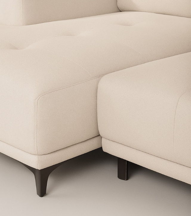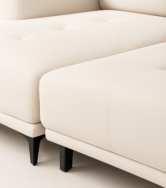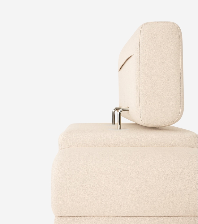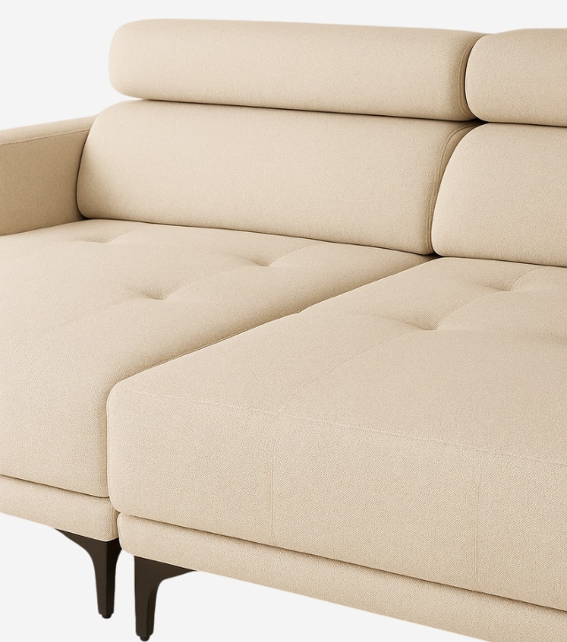 Dante combina estética limpia y confort inteligente. En su módulo más angosto integra un motor de extensión que, con un toque, prolonga el asiento y transforma el sillón en modo relax/sofá cama. Los cabezales pivotantes se ajustan a distintas alturas y posturas, acompañando la cervical sin perder la línea del diseño. Las proporciones generosas, el acolchado firme-cómodo y las patas metálicas discretas completan una pieza pensada para uso diario. Un sillón sobrio, funcional y contemporáneo que se adapta al cuerpo y al espacio.