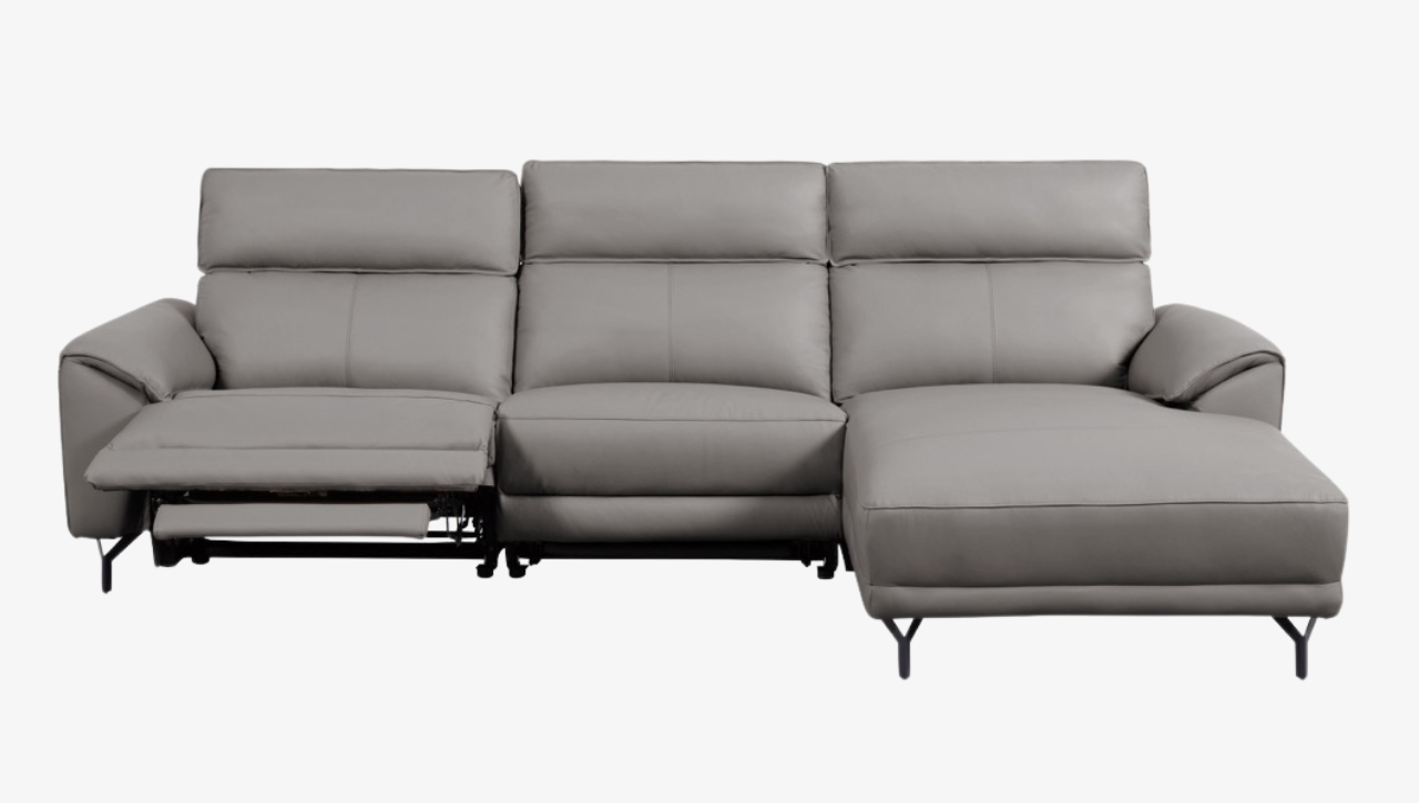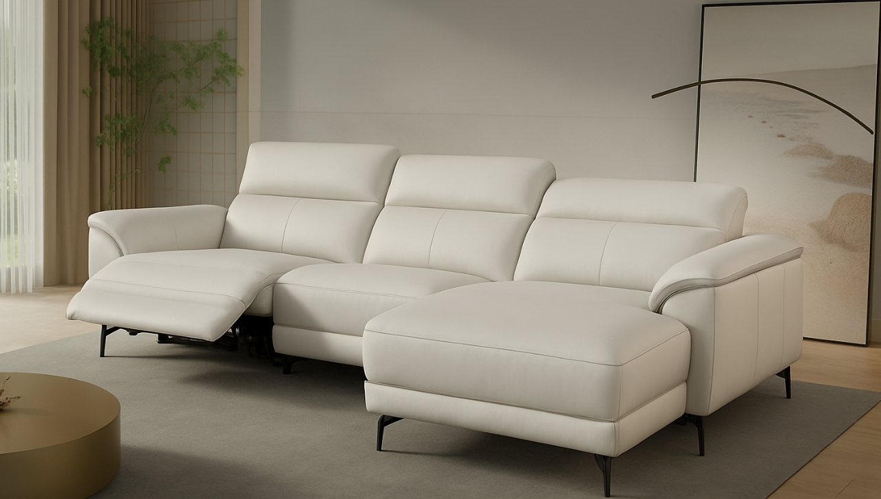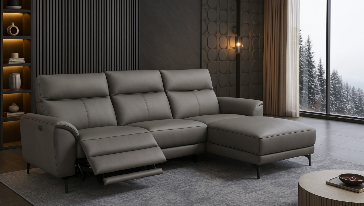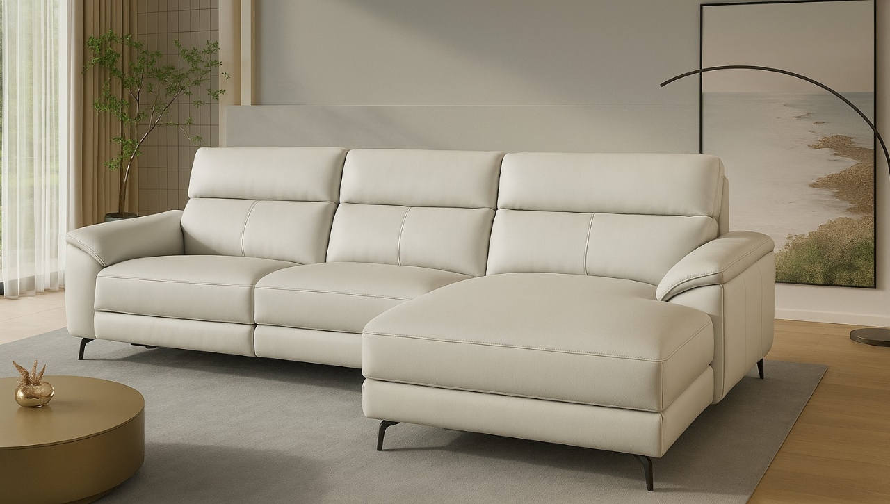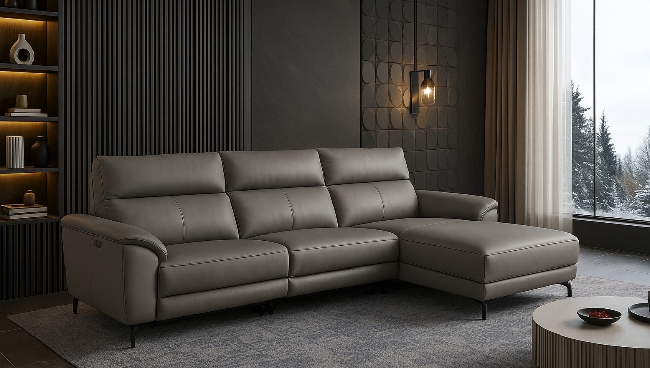 El Sillón Dante combina tecnología, confort y diseño en una pieza de estilo contemporáneo. Tapizado en cuero natural en dos opciones de entrega inmeidata beige o gris topo, ofrece suavidad, durabilidad y una presencia elegante. Su sistema de reclinación eléctrica silenciosa permite ajustar respaldo y apoyapiés con un solo movimiento, e incorpora un puerto USB para carga de dispositivos. La chaise longue lateral amplía la comodidad, mientras las patas metálicas en negro mate aportan solidez y ligereza visual. Ideal para livings modernos, el Dante fusiona estética y funcionalidad en un espacio pensado para el verdadero descanso.
