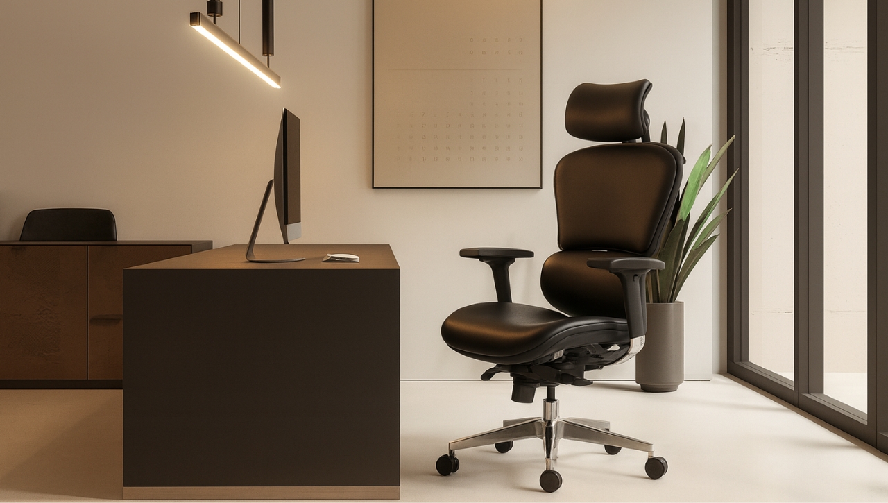 El Sillón Ergonómico Hero está pensado para quienes buscan comodidad, soporte y estilo en largas jornadas de trabajo o estudio. Su respaldo en cuero vacuno (blanco o negro) aporta sofisticación y durabilidad, mientras que el cabezal y soporte lumbar regulables aseguran una postura saludable.