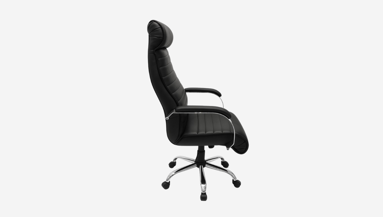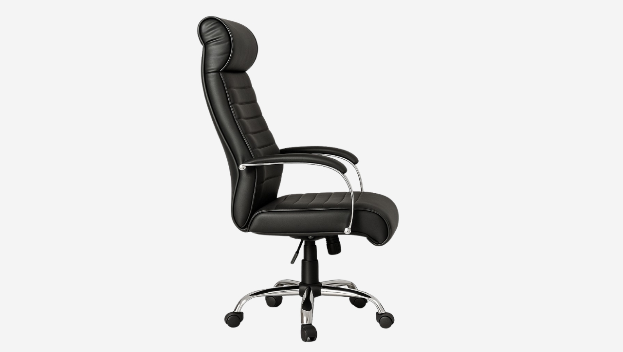 El Sillón Super Akiles combina confort, estilo y durabilidad. Su estructura metálica cromada y tapizado en eco cuero le otorgan elegancia y resistencia, mientras que el respaldo alto con apoyacabeza integrado brinda soporte ergonómico durante toda la jornada. Con sistema basculante, regulación neumática de altura y ruedas, es la opción ideal para quienes buscan diseño y bienestar en el trabajo.