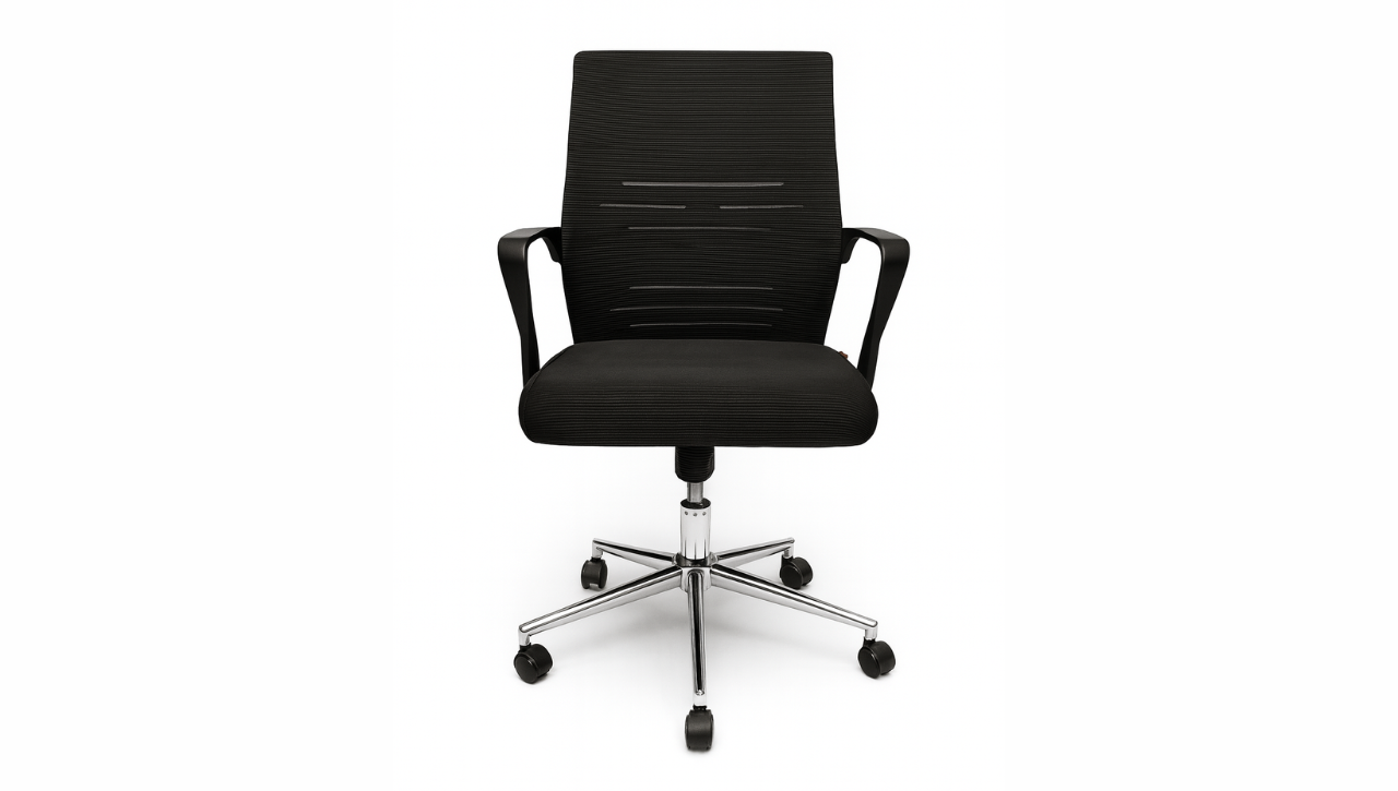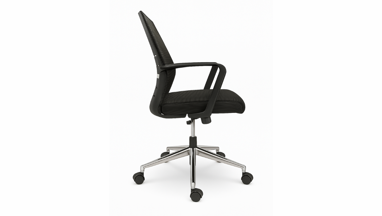 La Nebula es una silla de visita diseñada para aportar sofisticación, ergonomía y resistencia a cualquier espacio de trabajo moderno. Su estructura en caño cromado de una sola pieza ofrece una base firme y estable, mientras que su asiento y respaldo tapizados en tejido técnico brindan una comodidad superior incluso en usos prolongados.